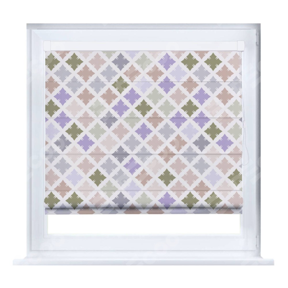 Римская штора производителя «Cortin», устанавливается на створку окна, пошита из ткани блэкаут с нанесением сублимационной печати «Фигурные плитки». Штора шьётся по индивидуальным размерам, для данного типа римской шторы возможная ширина от 35 до 150 см., высота до 250 см.