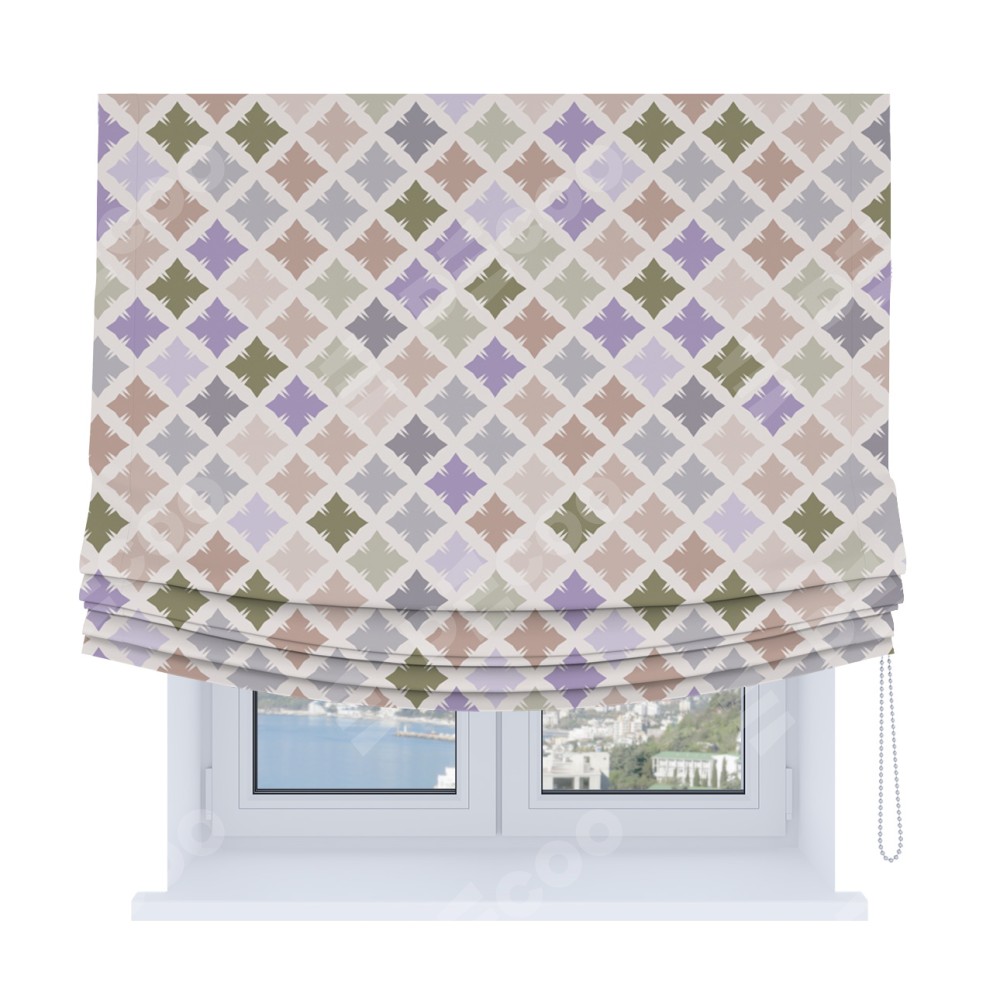 Римская штора Soft производителя «Cortin», используется для проёма, пошита из ткани блэкаут с нанесением сублимационной печати «Фигурные плитки». Имеет универсальный механизм и подходит для монтажа: на потолок, на стену и в нишу. В отличие от стандартных римских штор, римская штора Soft не имеет горизонтальных вставок и нижнего отвеса. Это позволяет ткани произвольно драпироваться в свободные мягкие складки.