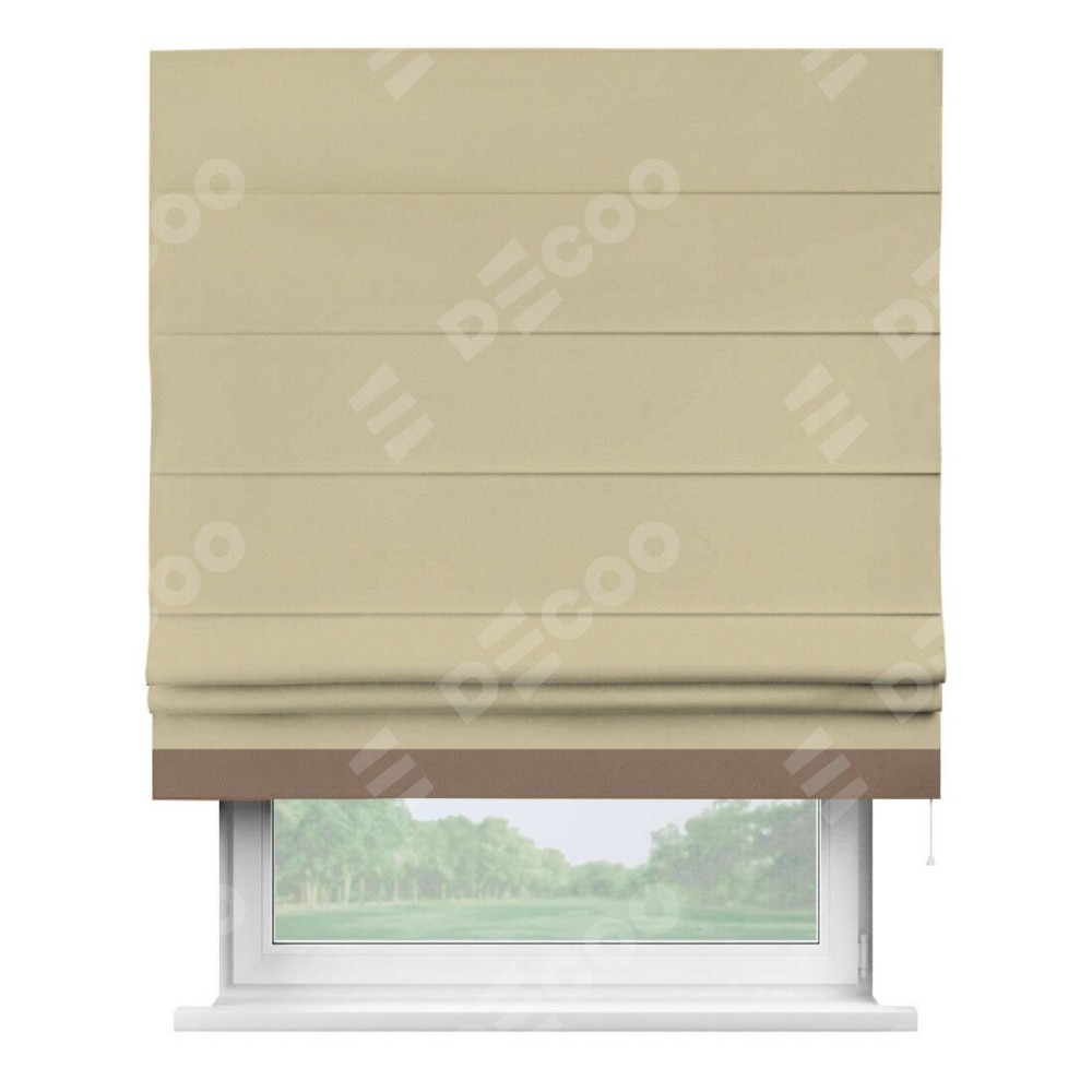 Римская штора производителя «Cortin», используется для проёма, пошита из ткани блэкаут однотонный кофейный, артикул ткани 13130. Отделка шторы кантом «Джестер», ткань для канта используется из блэкаута однотонного разной расцветки на выбор. Имеет универсальный механизм и подходит для монтажа: на потолок, на стену и в нишу.