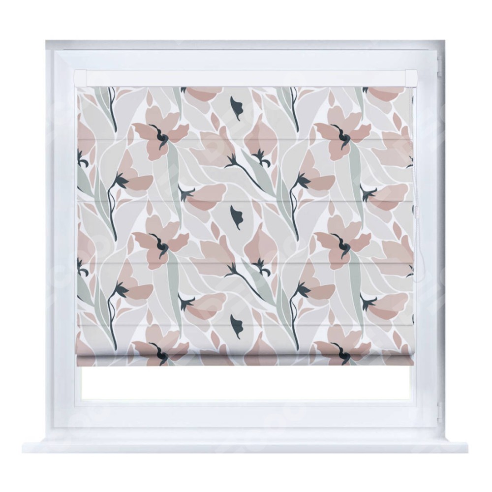 Римская штора производителя «Cortin», устанавливается на створку окна, пошита из ткани блэкаут с нанесением сублимационной печати «Тюльпаны пастель». Штора шьётся по индивидуальным размерам, для данного типа римской шторы возможная ширина от 35 до 150 см., высота до 250 см.