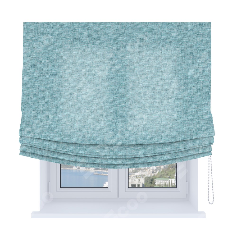 Римская штора Soft производителя «Cortin», используется для проёма, пошита из ткани лён кашемир голубой, артикул ткани 21616. Имеет универсальный механизм и подходит для монтажа: на потолок, на стену и в нишу. В отличие от стандартных римских штор, римская штора Soft не имеет горизонтальных вставок и нижнего отвеса. Это позволяет ткани произвольно драпироваться в свободные мягкие складки.