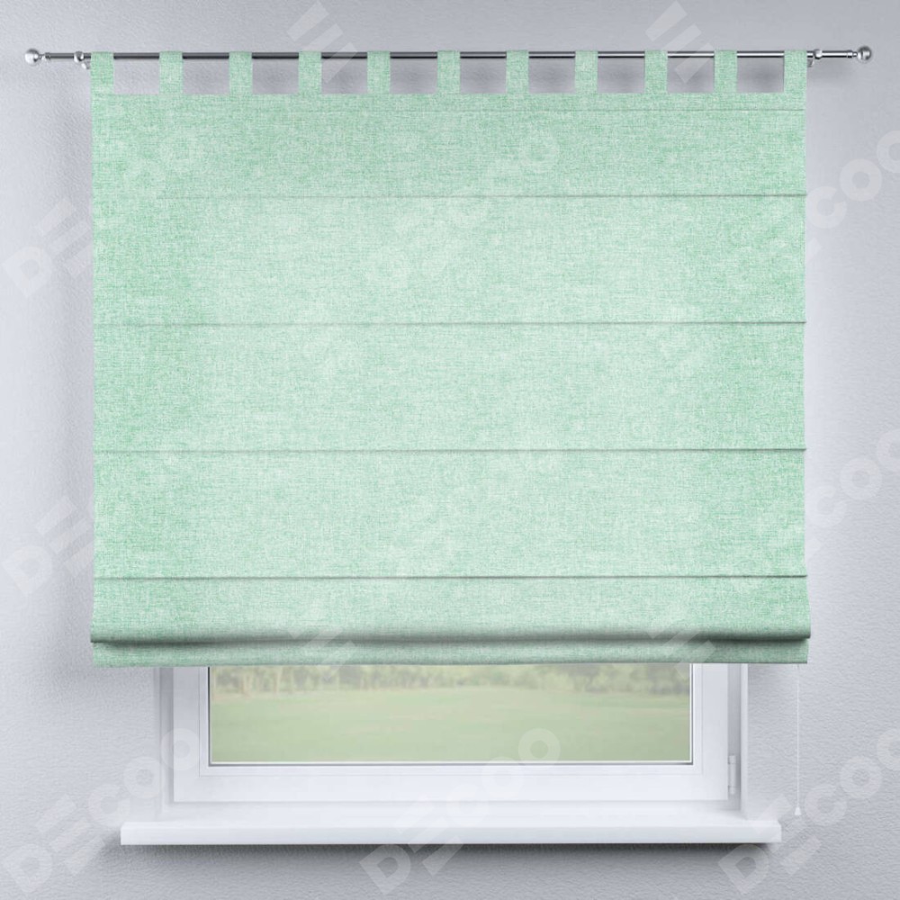 Римская штора производителя «Cortin», используется для проёма, пошита из ткани лён кашемир мятный, артикул ткани 21617. Данная модель пошита на петлях, комплектуется на выбор круглым карнизом и подходит для монтажа на стену. Римская штора на петлях имеет простую систему регулировки высоты, отличительным преимуществом данной модели является простой способ монтажа. Достаточно повесить ее на трубу и штора готова!