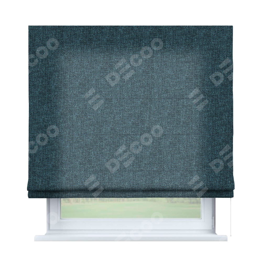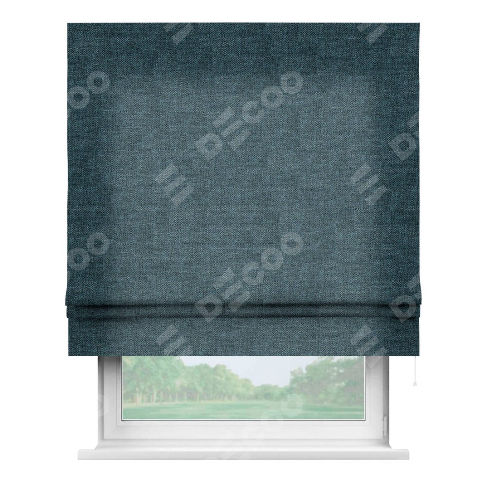 Римская штора производителя «Cortin», используется для проёма, пошита из ткани лён кашемир синий, артикул ткани 21623. Имеет универсальный механизм и подходит для монтажа: на потолок, на стену и в нишу.