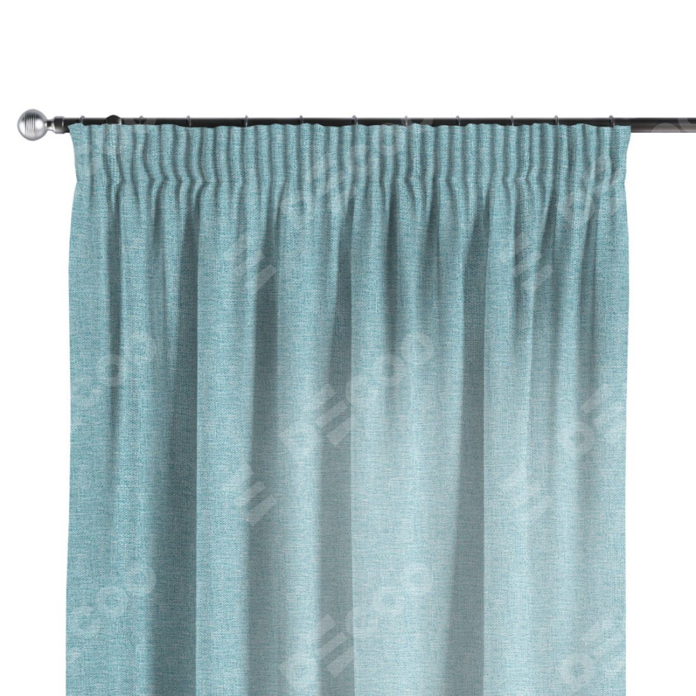 Комплект прямых штор, от производителя «Cortin», пошиты из ткани лён кашемир голубой, артикул ткани 21616. С изнаночной стороны в верхней части штор пристрачивается шторная лента с декоративными складками «Карандаш». Для создания элегантных складок прямые шторы шьются по стандарту с коэффициентом 1:2 (на 100 см. ширины проёма 200 см. ширины ткани).