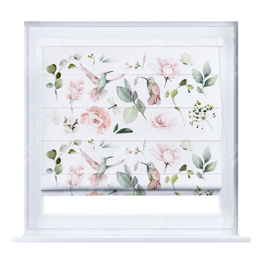 Римская штора производителя «Cortin», устанавливается на створку окна, пошита из ткани блэкаут с нанесением сублимационной печати «Уютный сад». Штора шьётся по индивидуальным размерам, для данного типа римской шторы возможная ширина от 35 до 150 см., высота до 250 см.