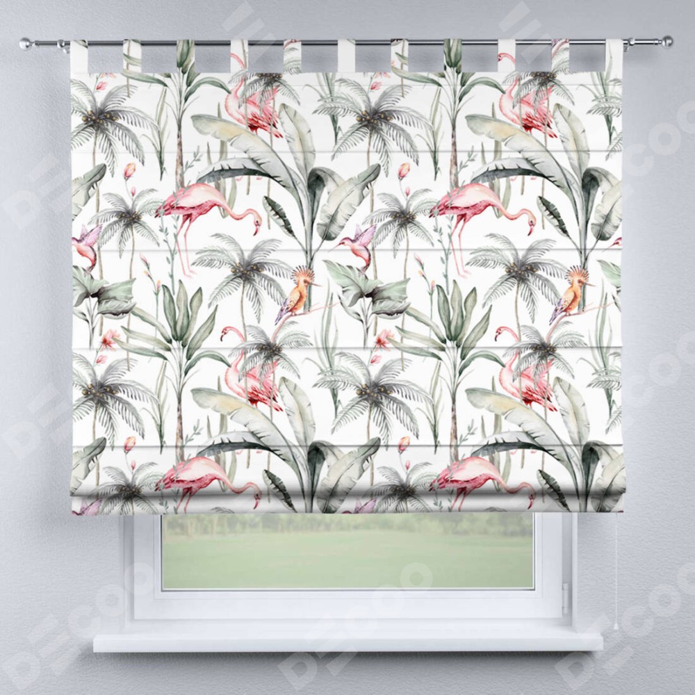 Римская штора производителя «Cortin», используется для проёма, пошита из ткани блэкаут с нанесением сублимационной печати «Изящные фламинго». Данная модель пошита на петлях, комплектуется на выбор круглым карнизом и подходит для монтажа на стену. Римская штора на петлях имеет простую систему регулировки высоты, отличительным преимуществом данной модели является простой способ монтажа. Достаточно повесить ее на трубу и штора готова!