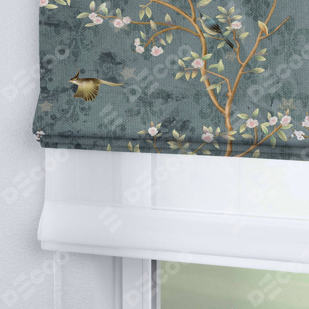 Римская штора день-ночь производителя «Cortin», используется для проёма, пошита из двух полотен, с лицевой блэкаут с нанесением сублимационной печати «Тенистый сад», вторая ткань тюль (по стандарту комплектуется тюль белого цвета артикул V-01). Имеет универсальный механизм и подходит для монтажа: на потолок, на стену и в нишу.