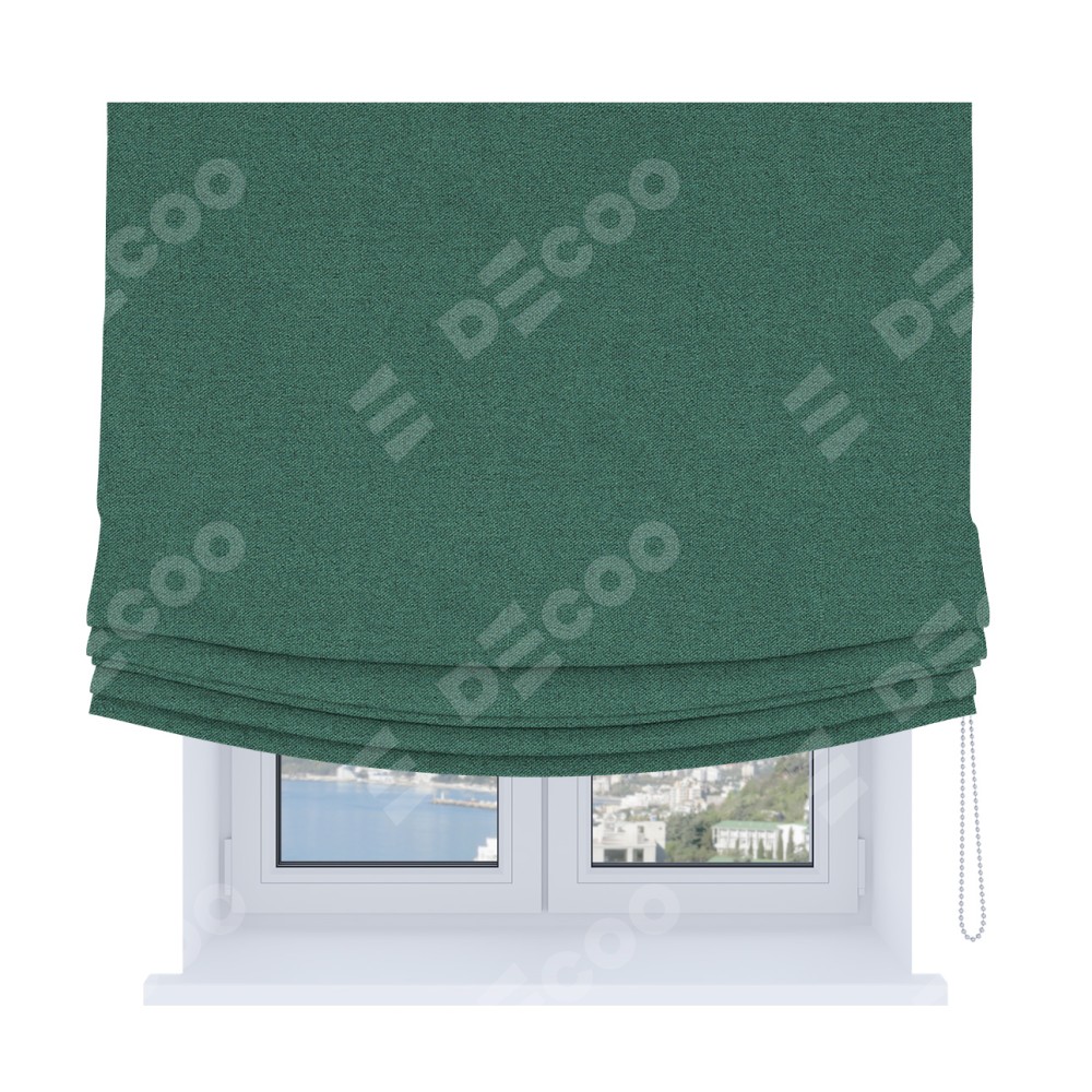 Римская штора Soft производителя «Cortin», используется для проёма, пошита из ткани лён блэкаут бирюзовый, артикул ткани 69517. Имеет универсальный механизм и подходит для монтажа: на потолок, на стену и в нишу. В отличие от стандартных римских штор, римская штора Soft не имеет горизонтальных вставок и нижнего отвеса. Это позволяет ткани произвольно драпироваться в свободные мягкие складки.