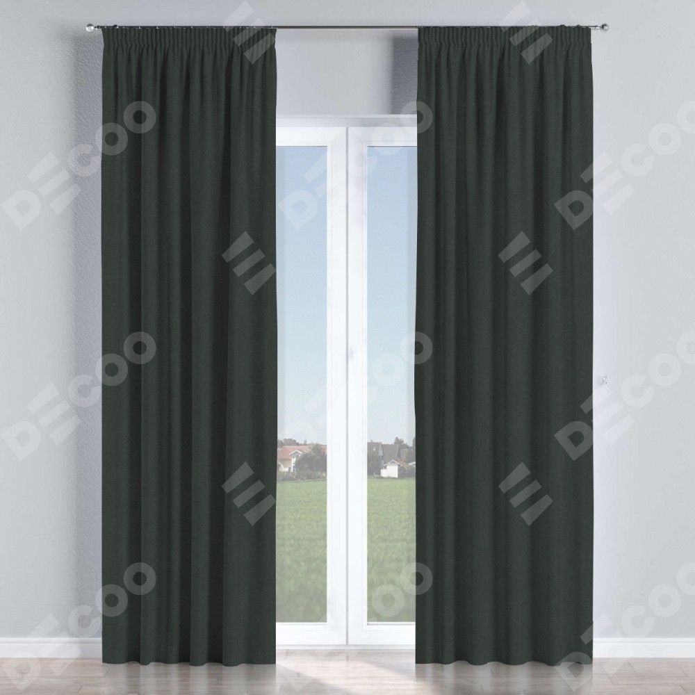 Комплект прямых штор, от производителя «Cortin», пошиты из ткани лён блэкаут графит, артикул ткани 69448. С изнаночной стороны в верхней части штор пристрачивается шторная лента с декоративными складками «Карандаш». Для создания элегантных складок прямые шторы шьются по стандарту с коэффициентом 1:2 (на 100 см. ширины проёма 200 см. ширины ткани).