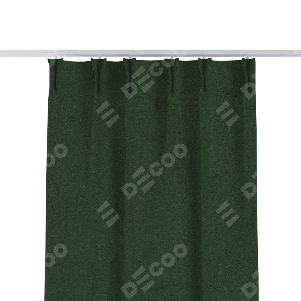 Комплект прямых штор, от производителя «Cortin», пошиты из ткани лён блэкаут зелёный, артикул ткани 69497. С изнаночной стороны в верхней части штор пристрачивается шторная лента с декоративными складками «Кустик». Для создания элегантных складок прямые шторы шьются по стандарту с коэффициентом 1:2 (на 100 см. ширины проёма 200 см. ширины ткани).