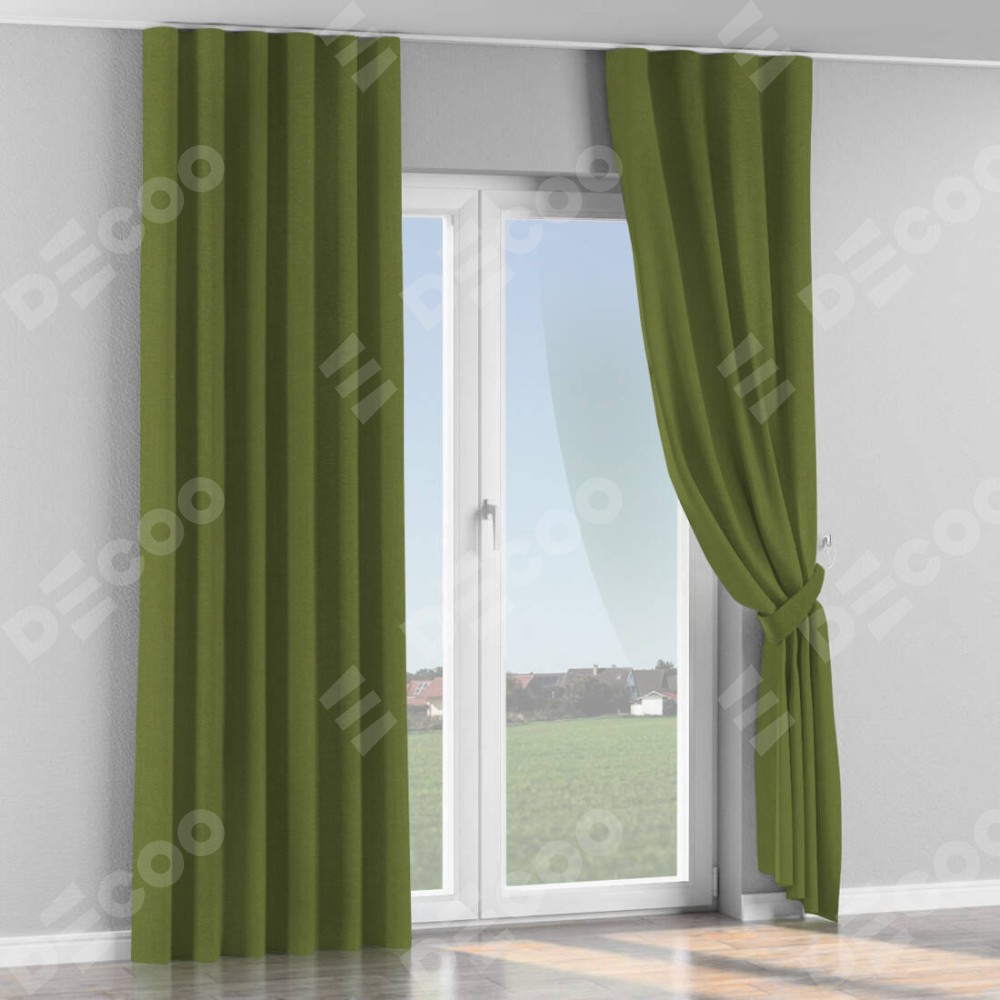 Комплект прямых штор, от производителя «Cortin», пошиты из ткани лён блэкаут оливковый, артикул ткани 69516. С изнаночной стороны в верхней части штор пристрачивается шторная лента с декоративными складками «Волна». Для создания элегантных складок прямые шторы шьются по стандарту с коэффициентом 1:2 (на 100 см. ширины проёма 200 см. ширины ткани).