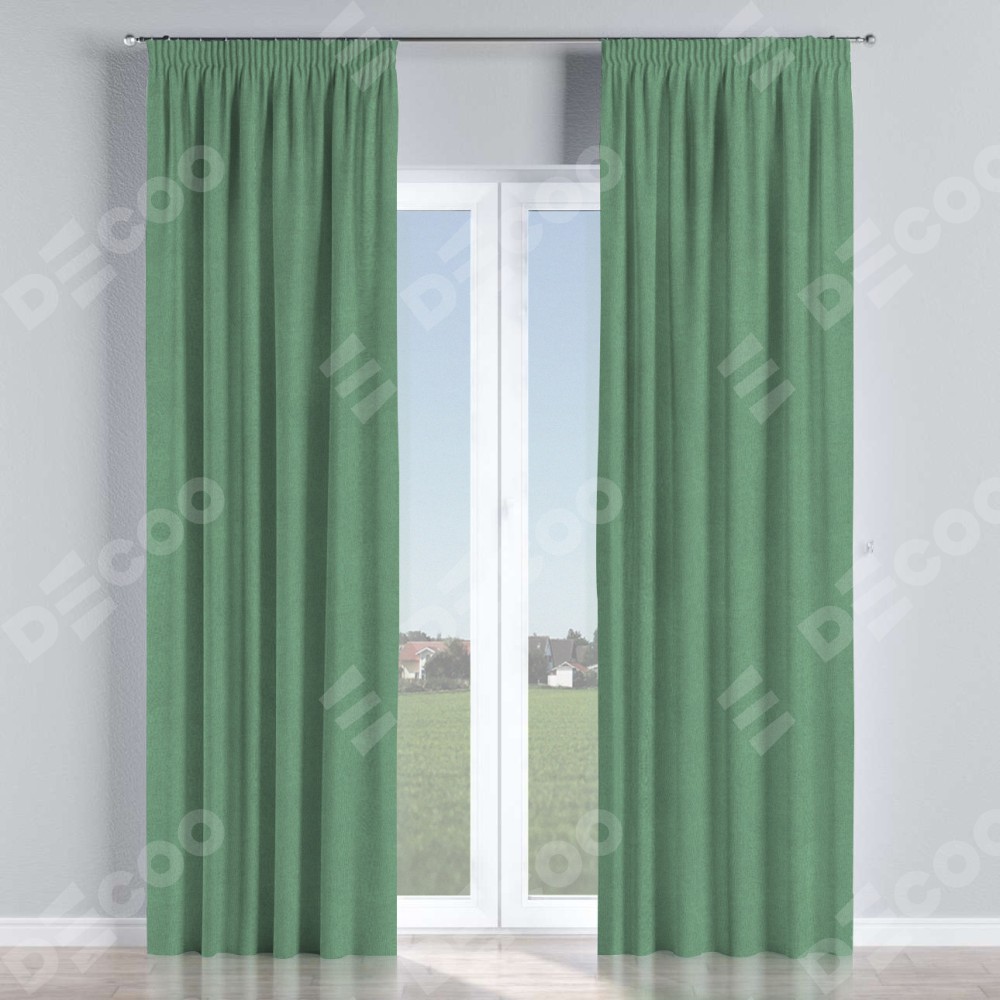 Комплект прямых штор, от производителя «Cortin», пошиты из ткани лён блэкаут светло-бирюзовый, артикул ткани 69443. С изнаночной стороны в верхней части штор пристрачивается шторная лента с декоративными складками «Карандаш». Для создания элегантных складок прямые шторы шьются по стандарту с коэффициентом 1:2 (на 100 см. ширины проёма 200 см. ширины ткани).