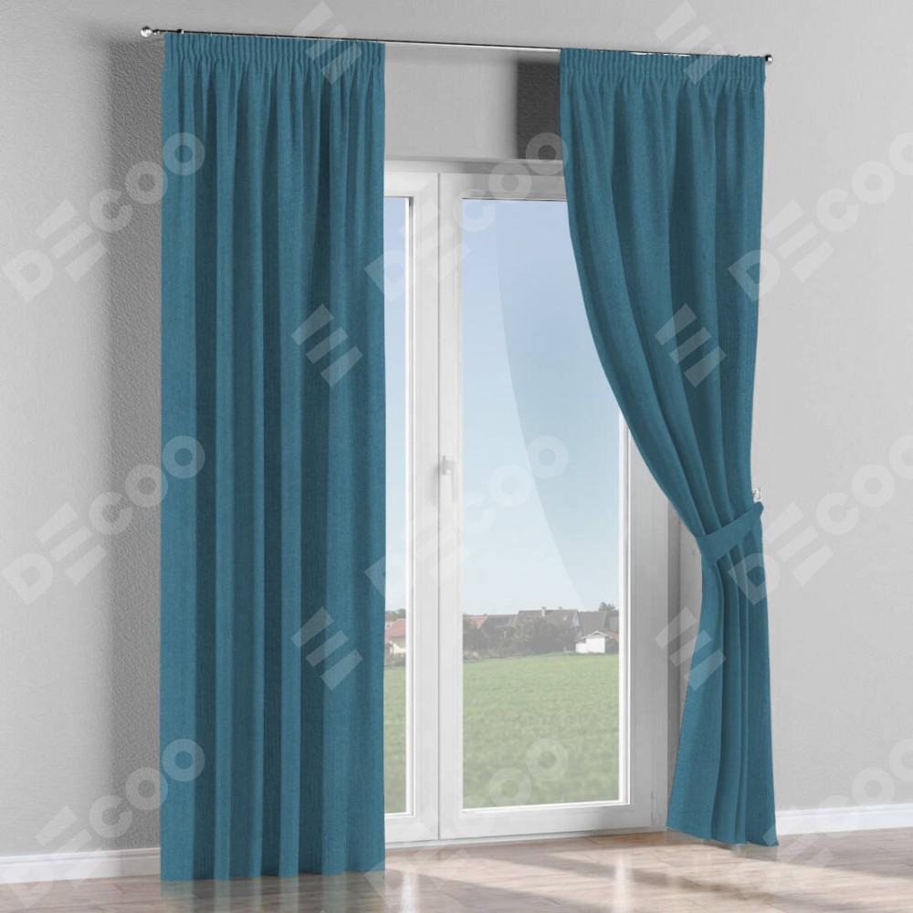 Комплект прямых штор, от производителя «Cortin», пошиты из ткани лён блэкаут синий, артикул ткани 69528. С изнаночной стороны в верхней части штор пристрачивается шторная лента с декоративными складками «Карандаш». Для создания элегантных складок прямые шторы шьются по стандарту с коэффициентом 1:2 (на 100 см. ширины проёма 200 см. ширины ткани).
