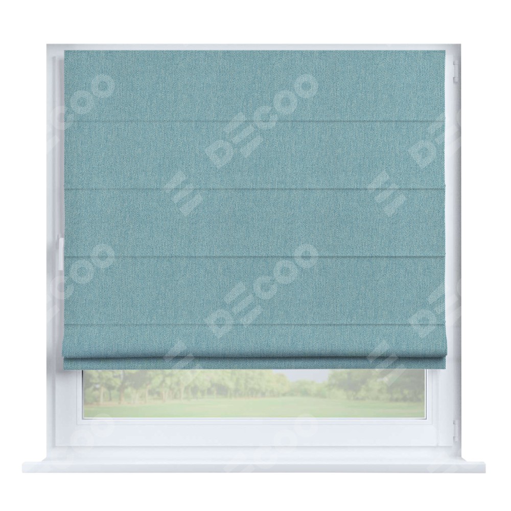 Римская штора производителя «Cortin», устанавливается на створку окна, пошита из ткани твид блэкаут небесно-голубой, артикул 21578. Штора шьётся по индивидуальным размерам, для данного типа римской шторы возможная ширина от 35 до 150 см., высота до 250 см.
