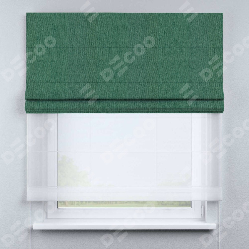 Римская штора день-ночь производителя «Cortin», используется для проёма, пошита из двух полотен, с лицевой стороны твид блэкаут зелёный