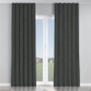 Комплект прямых штор, от производителя «Cortin», пошиты из ткани вельвет тёмно-серый, артикул ткани 33811. С изнаночной стороны в верхней части штор пристрачивается шторная лента с декоративными складками «Волна». Для создания элегантных складок прямые шторы шьются по стандарту с коэффициентом 1:2 (на 100 см. ширины проёма 200 см. ширины ткани).