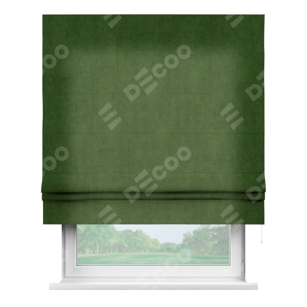 Римская штора производителя «Cortin», используется для проёма, пошита из ткани вельвет тёмно-салатовый, артикул ткани 33805. Имеет универсальный механизм и подходит для монтажа: на потолок, на стену и в нишу.