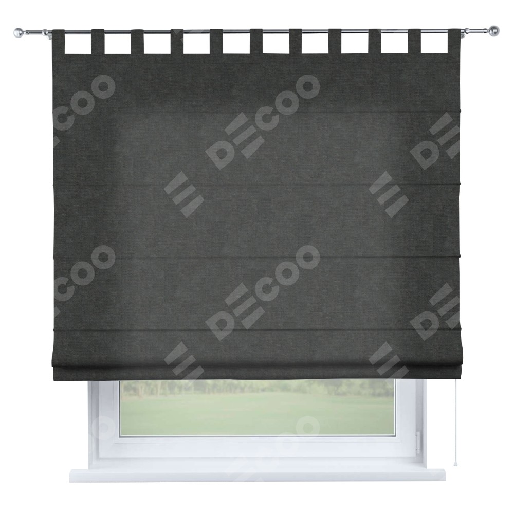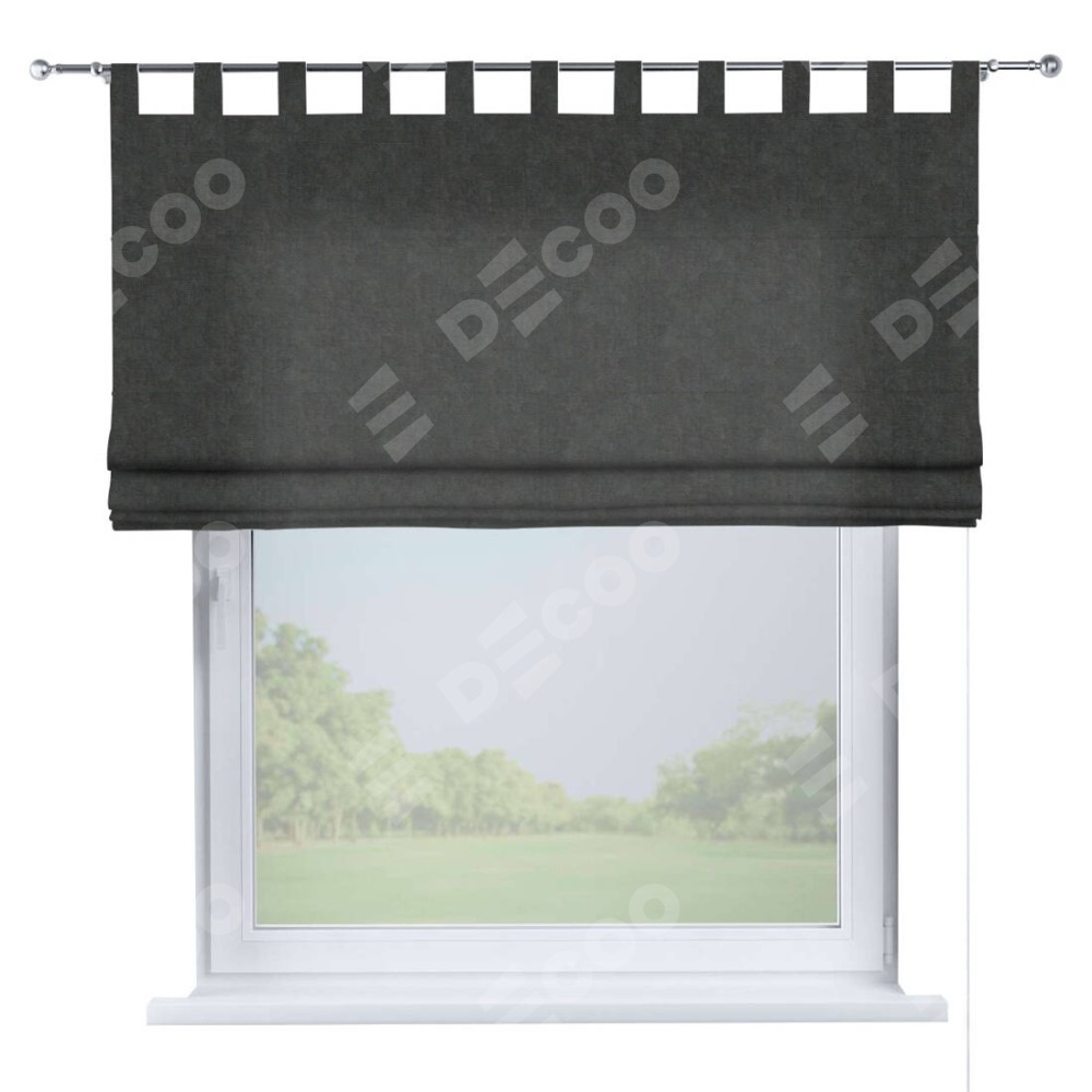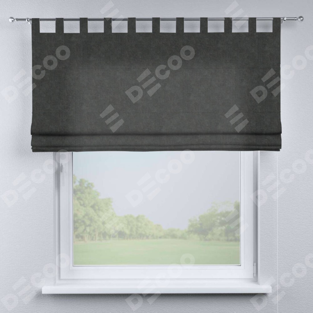 Римская штора производителя «Cortin», используется для проёма, пошита из ткани вельвет тёмно-серый, артикул ткани 33811. Данная модель пошита на петлях, комплектуется на выбор круглым карнизом и подходит для монтажа на стену. Римская штора на петлях имеет простую систему регулировки высоты, отличительным преимуществом данной модели является простой способ монтажа. Достаточно повесить ее на трубу и штора готова!