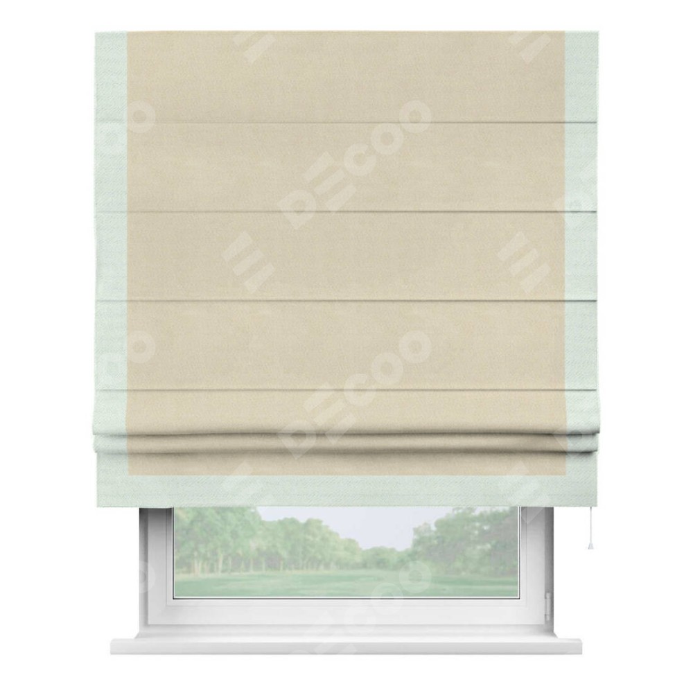Римская штора производителя «Cortin», используется для проёма, пошита из ткани блэкаут однотонный бежевый, артикул ткани 13125. Отделка шторы кантом «Виктория», ткань для канта используется из блэкаута однотонного разной расцветки на выбор. Имеет универсальный механизм и подходит для монтажа: на потолок, на стену и в нишу.