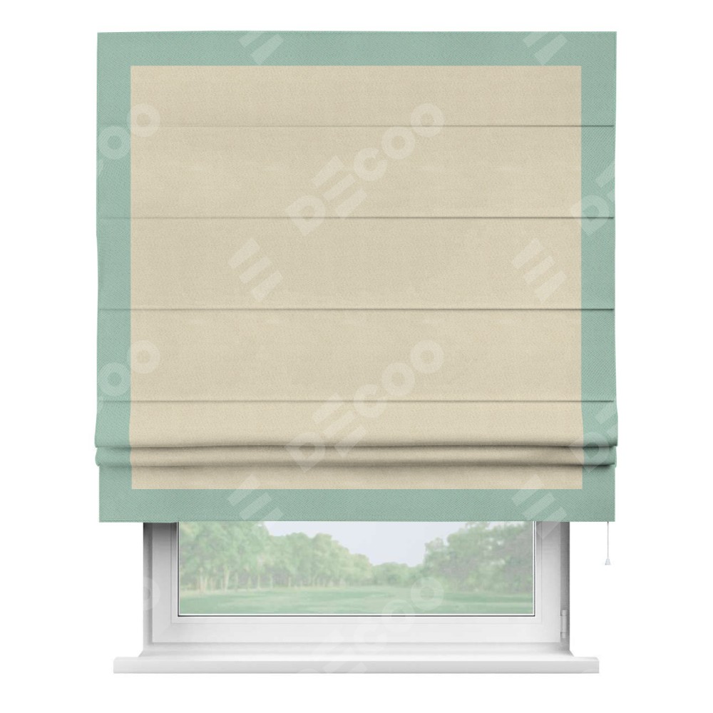 Римская штора производителя «Cortin», используется для проёма, пошита из ткани блэкаут однотонный бежевый, артикул ткани 13125. Отделка шторы кантом «Чесс», ткань для канта используется из блэкаута однотонного разной расцветки на выбор. Имеет универсальный механизм и подходит для монтажа: на потолок, на стену и в нишу.