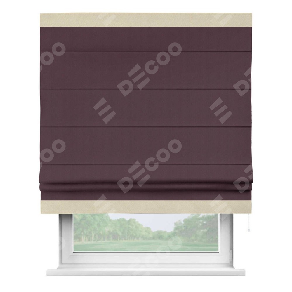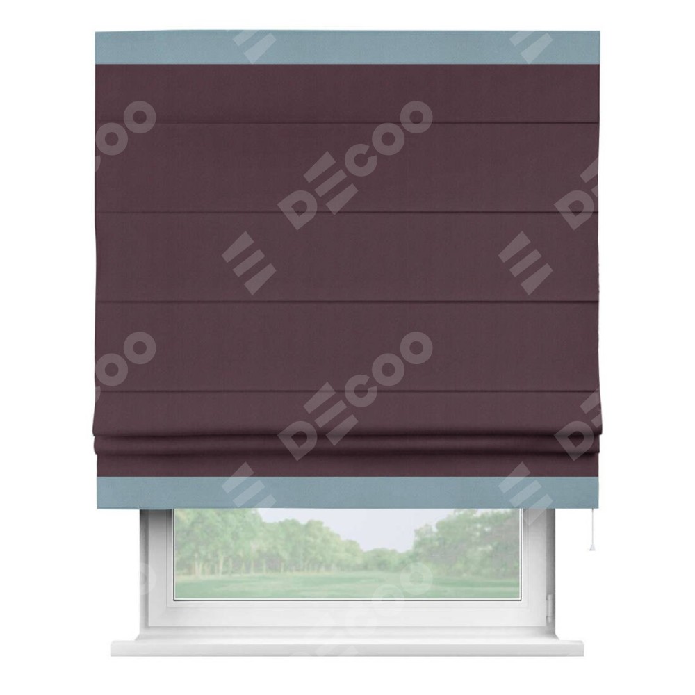 Римская штора производителя «Cortin», используется для проёма, пошита из ткани блэкаут однотонный сиреневый, артикул ткани 29333−2. Отделка шторы кантом «Горизонт», ткань для канта используется из блэкаута однотонного разной расцветки на выбор. Имеет универсальный механизм и подходит для монтажа: на потолок, на стену и в нишу.