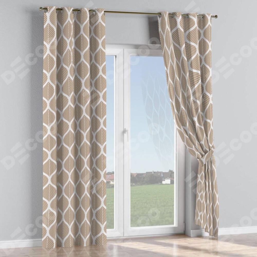 Комплект прямых штор, от производителя «Cortin», пошиты из ткани блэкаут с нанесением сублимационной печати «Листья геометрия». Данная модель пошита на люверсах, комплектуется на выбор круглым карнизом и подходит для монтажа на стену или потолок. Прямые шторы на люверсах шьются по стандарту с коэффициентом 1/2 (на 100 см. ширины проёма 200 см. ширины ткани), отличительным преимуществом данной модели является простой способ монтажа. Достаточно повесить ее на трубу и штора готова!