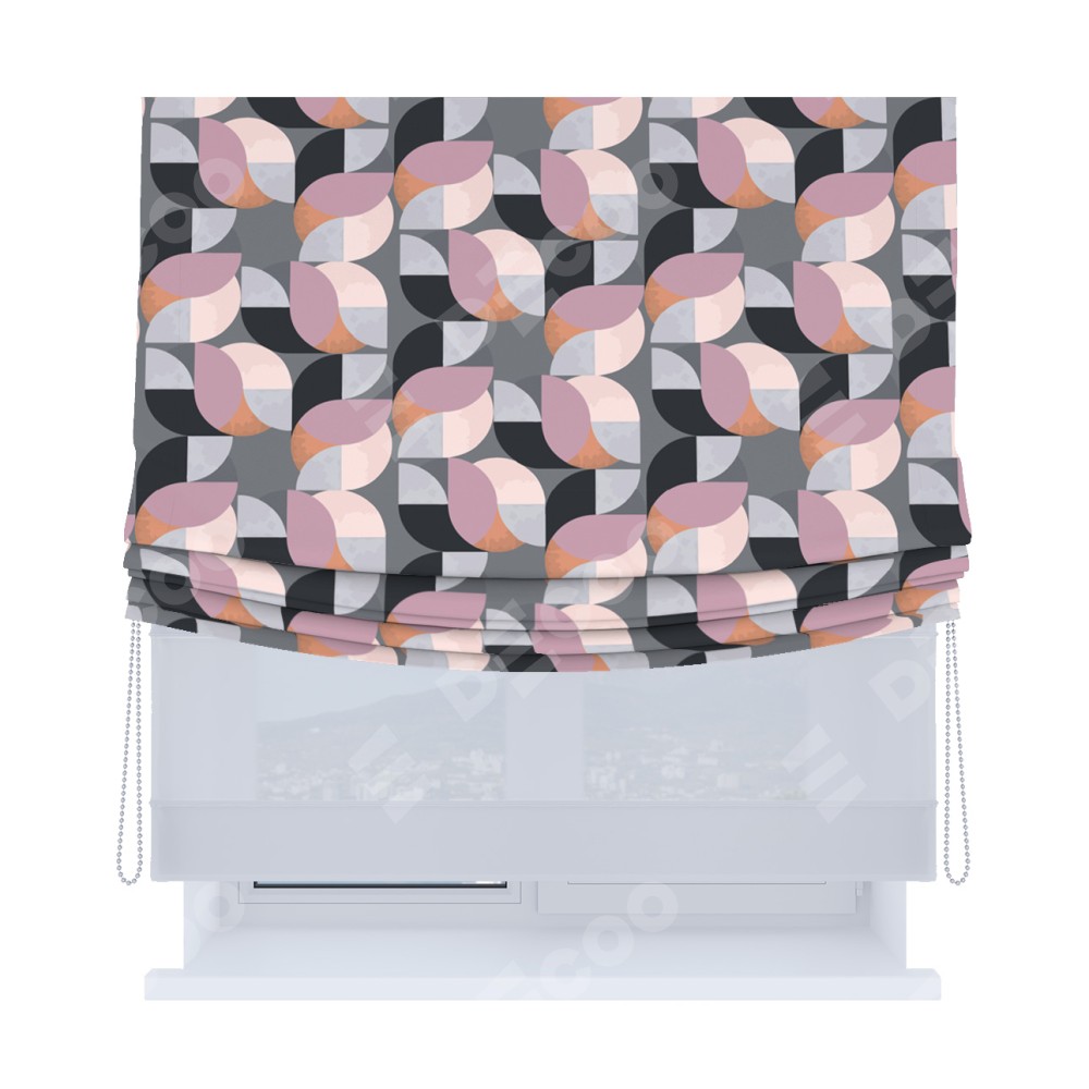 Римская штора день-ночь производителя «Cortin», используется для проёма, пошита из двух полотен, с лицевой блэкаут с нанесением сублимационной печати «Абстрактный узор», вторая ткань тюль (по стандарту комплектуется тюль белого цвета артикул V-01). Имеет универсальный механизм и подходит для монтажа: на потолок, на стену и в нишу. Удобное управление каждой шторой отдельно.