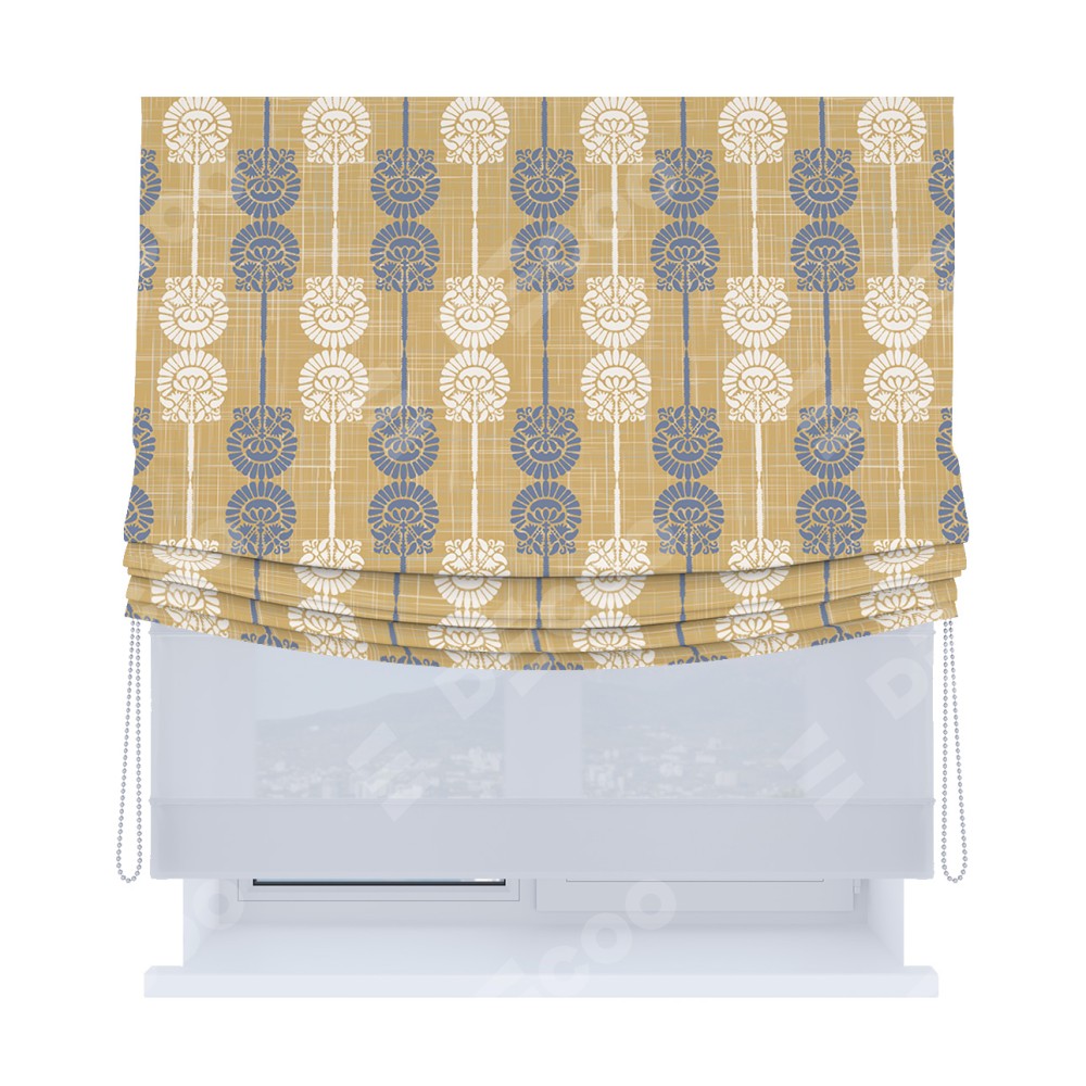 Римская штора день-ночь производителя «Cortin», используется для проёма, пошита из двух полотен, с лицевой блэкаут с нанесением сублимационной печати «Венок из ромашки», вторая ткань тюль (по стандарту комплектуется тюль белого цвета артикул V-01). Имеет универсальный механизм и подходит для монтажа: на потолок, на стену и в нишу. Удобное управление каждой шторой отдельно.
