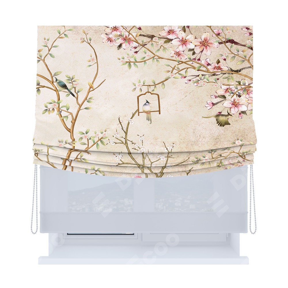 Римская штора день-ночь производителя «Cortin», используется для проёма, пошита из двух полотен, с лицевой блэкаут с нанесением сублимационной печати «Весенний сад», вторая ткань тюль (по стандарту комплектуется тюль белого цвета артикул V-01). Имеет универсальный механизм и подходит для монтажа: на потолок, на стену и в нишу. Удобное управление каждой шторой отдельно.