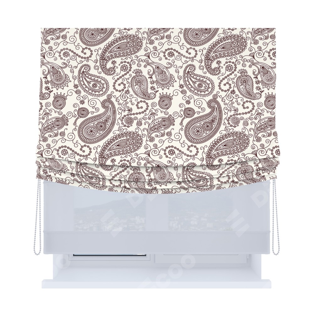 Римская штора день-ночь производителя «Cortin», используется для проёма, пошита из двух полотен, с лицевой блэкаут с нанесением сублимационной печати «Индийский узор», вторая ткань тюль (по стандарту комплектуется тюль белого цвета артикул V-01). Имеет универсальный механизм и подходит для монтажа: на потолок, на стену и в нишу. Удобное управление каждой шторой отдельно.