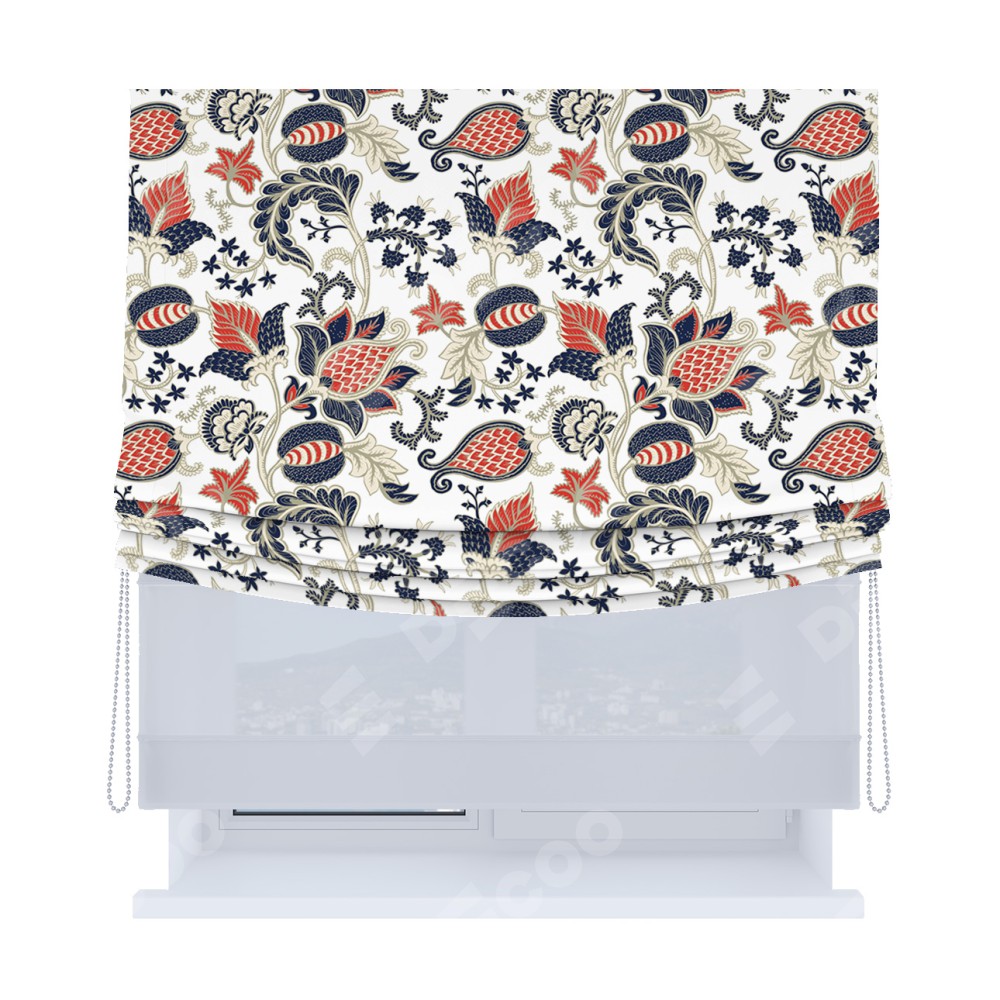 Римская штора день-ночь производителя «Cortin», используется для проёма, пошита из двух полотен, с лицевой блэкаут с нанесением сублимационной печати «Пёстрые цветы», вторая ткань тюль (по стандарту комплектуется тюль белого цвета артикул V-01). Имеет универсальный механизм и подходит для монтажа: на потолок, на стену и в нишу. Удобное управление каждой шторой отдельно.