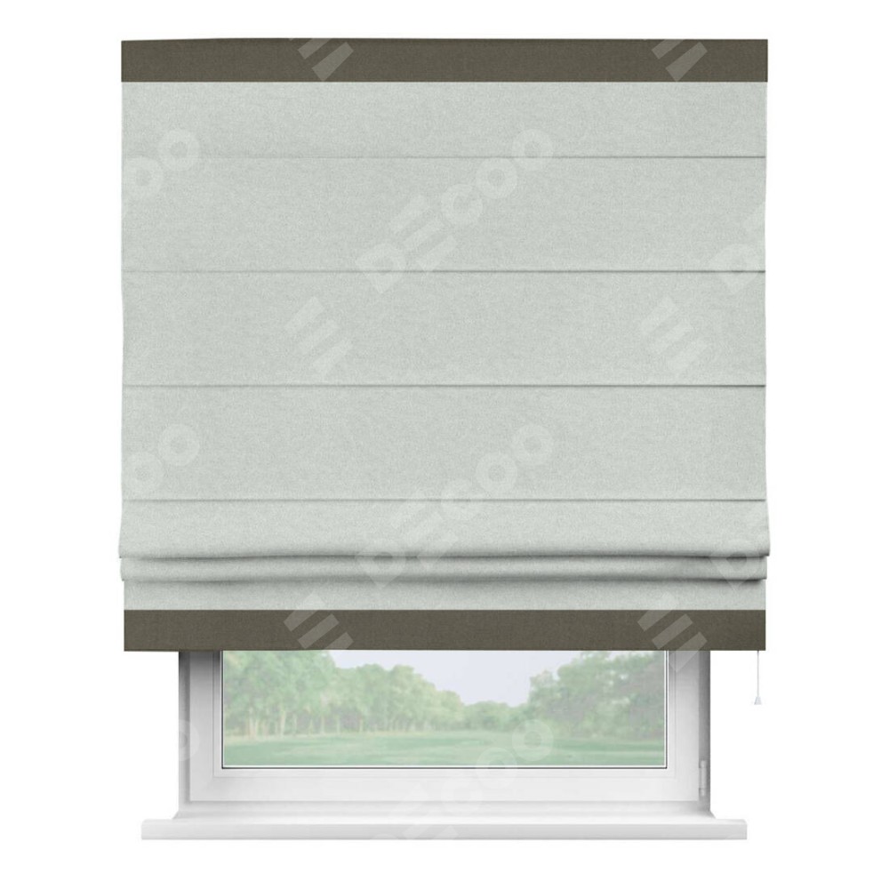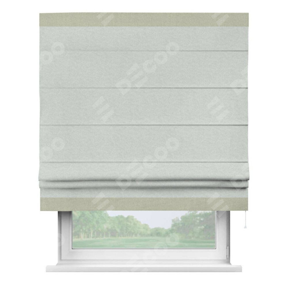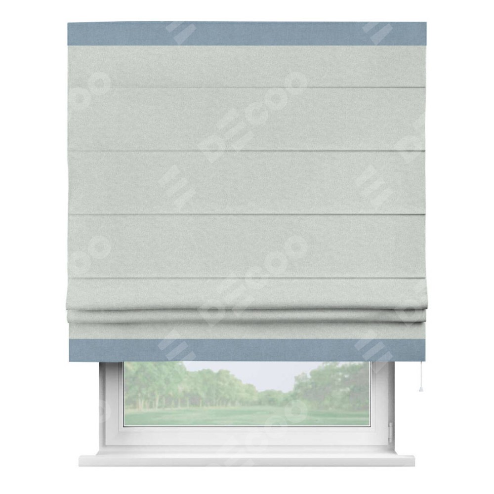 Римская штора производителя «Cortin», используется для проёма, пошита из ткани лён блэкаут белый, артикул 69451. Отделка шторы кантом «Горизонт», ткань для канта используется из льна разной расцветки на выбор. Имеет универсальный механизм и подходит для монтажа: на потолок, на стену и в нишу.