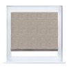 Римская штора кассетного типа, производителя «Cortin», устанавливается только на пластиковые окна и прилегает к стеклопакету, пошита из ткани софт однотонный тёмно-бежевый, артикул 1640.
