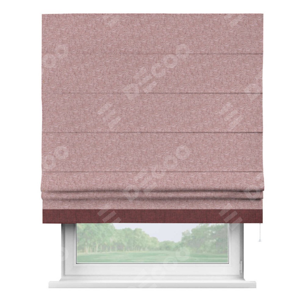 Римская штора производителя «Cortin», используется для проёма, пошита из ткани лён кашемир розовая пудра, артикул 21619. Отделка шторы кантом «Джестер», ткань для канта используется из льна разной расцветки на выбор. Имеет универсальный механизм и подходит для монтажа: на потолок, на стену и в нишу.