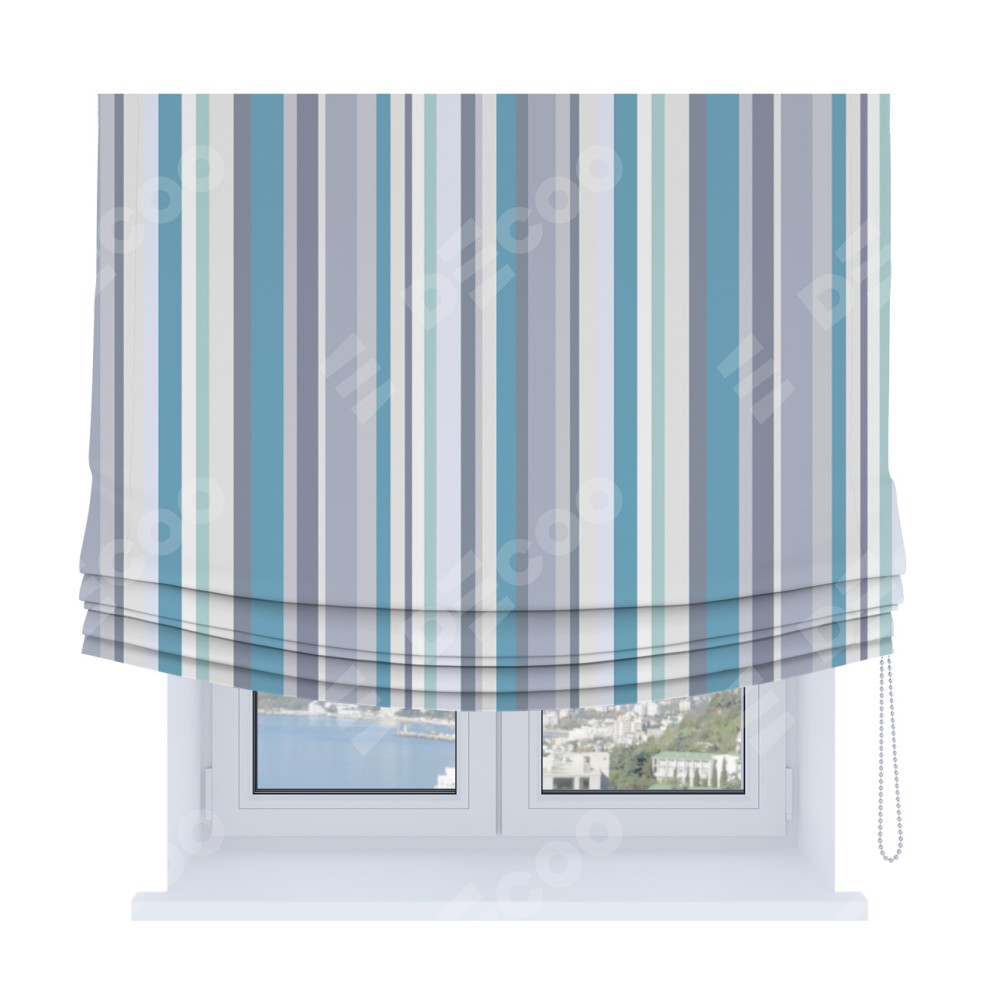 Римская штора Soft производителя «Cortin», используется для проёма, пошита из ткани блэкаут с нанесением сублимационной печати «Морские линии». Имеет универсальный механизм и подходит для монтажа: на потолок, на стену и в нишу. В отличие от стандартных римских штор, римская штора Soft не имеет горизонтальных вставок и нижнего отвеса. Это позволяет ткани произвольно драпироваться в свободные мягкие складки.