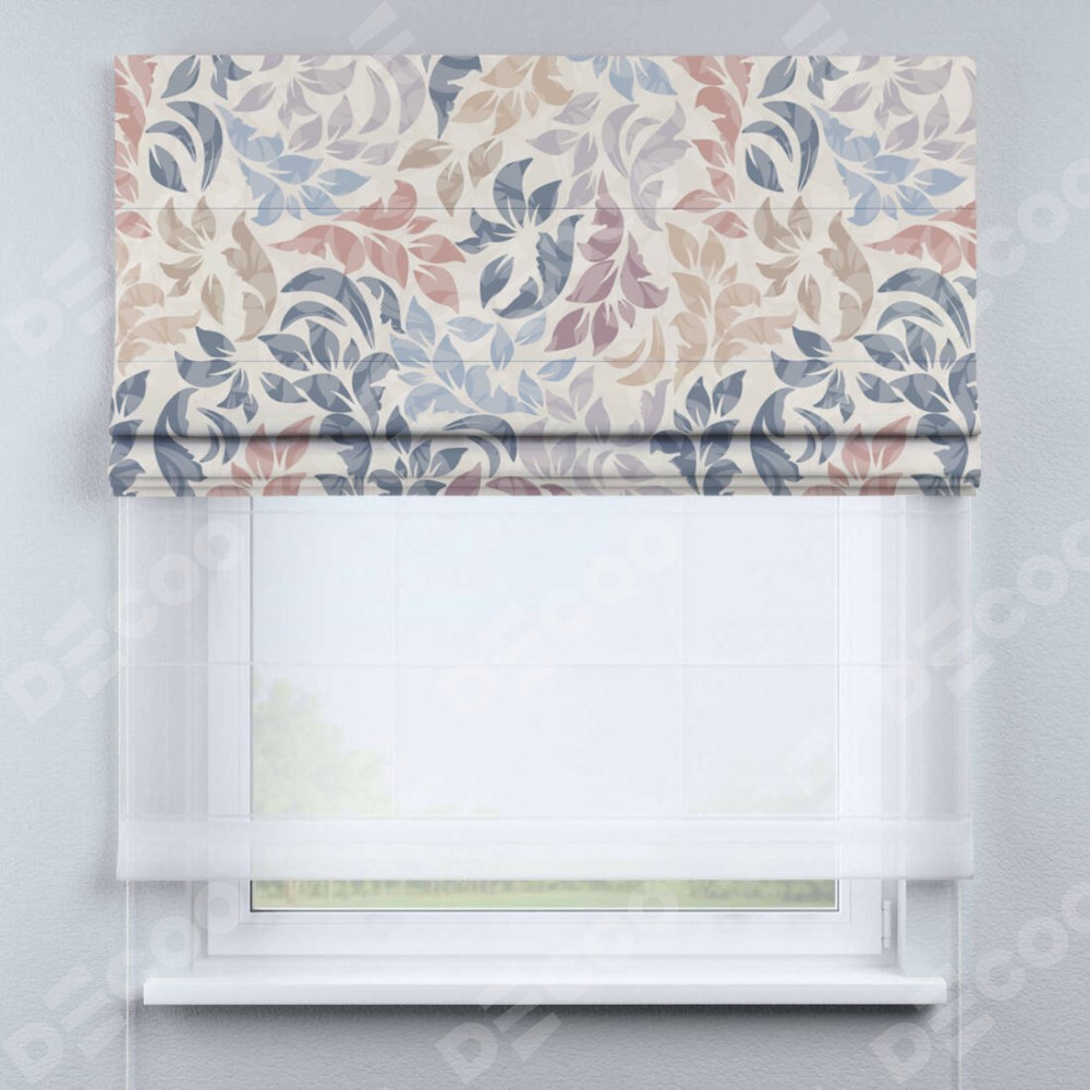 Римская штора день-ночь производителя «Cortin», используется для проёма, пошита из двух полотен, с лицевой блэкаут с нанесением сублимационной печати «Цветочная аура», вторая ткань тюль (по стандарту комплектуется тюль белого цвета артикул V-01). Имеет универсальный механизм и подходит для монтажа: на потолок, на стену и в нишу.