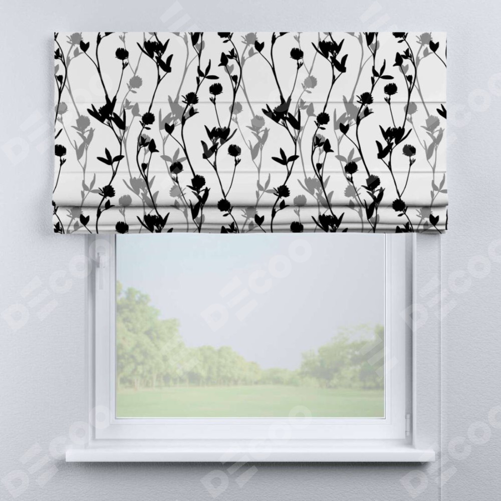 Римская штора производителя «Cortin», используется для проёма, пошита из ткани блэкаут с нанесением сублимационной печати «Цветочный силуэт». Имеет универсальный механизм и подходит для монтажа: на потолок, на стену и в нишу.