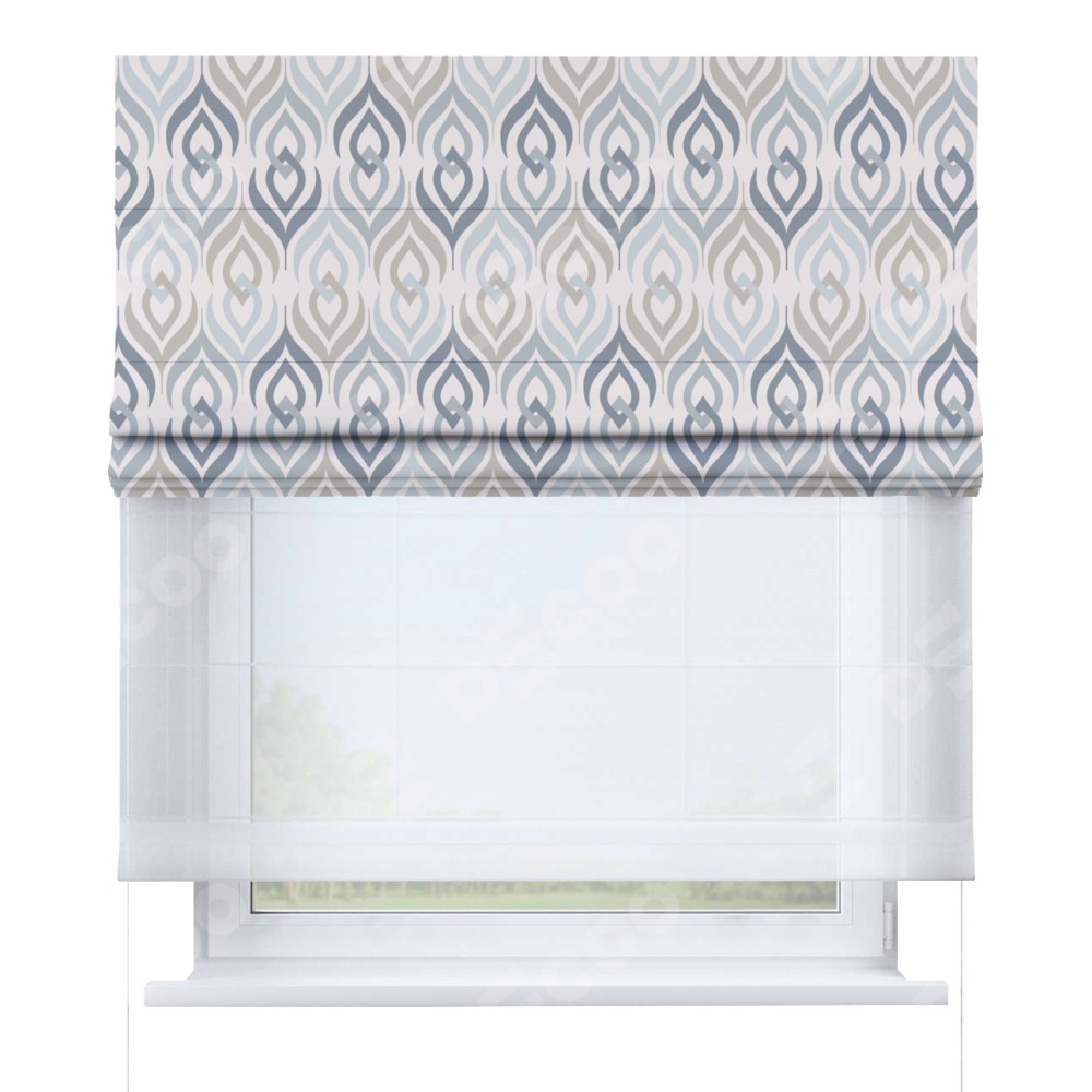 Римская штора день-ночь производителя «Cortin», используется для проёма, пошита из двух полотен, с лицевой блэкаут с нанесением сублимационной печати «Элизиум», вторая ткань тюль (по стандарту комплектуется тюль белого цвета артикул V-01). Имеет универсальный механизм и подходит для монтажа: на потолок, на стену и в нишу.