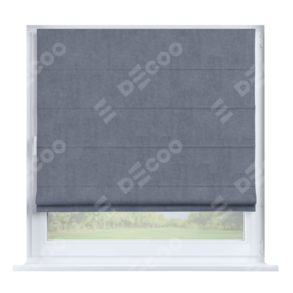 Римская штора производителя «Cortin», устанавливается на створку окна, пошита из ткани канвас васильковый, артикул v-203. Штора шьётся по индивидуальным размерам, для данного типа римской шторы возможная ширина от 35 до 150 см., высота до 250 см.