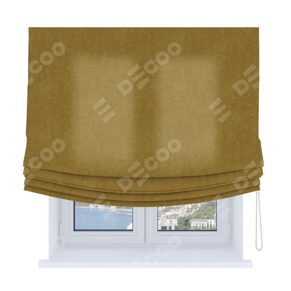 Римская штора Soft производителя «Cortin», используется для проёма, пошита из ткани канвас горчица, артикул ткани v-476. Имеет универсальный механизм и подходит для монтажа: на потолок, на стену и в нишу. В отличие от стандартных римских штор, римская штора Soft не имеет горизонтальных вставок и нижнего отвеса. Это позволяет ткани произвольно драпироваться в свободные мягкие складки.