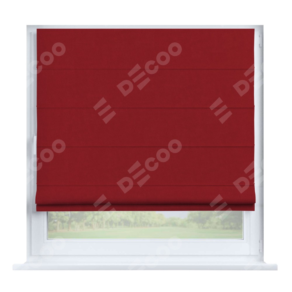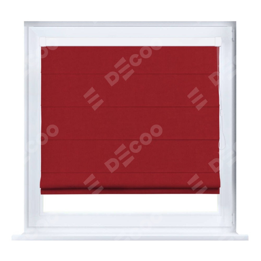 Римская штора производителя «Cortin», устанавливается на створку окна, пошита из ткани канвас красный, артикул v-113. Штора шьётся по индивидуальным размерам, для данного типа римской шторы возможная ширина от 35 до 150 см., высота до 250 см.