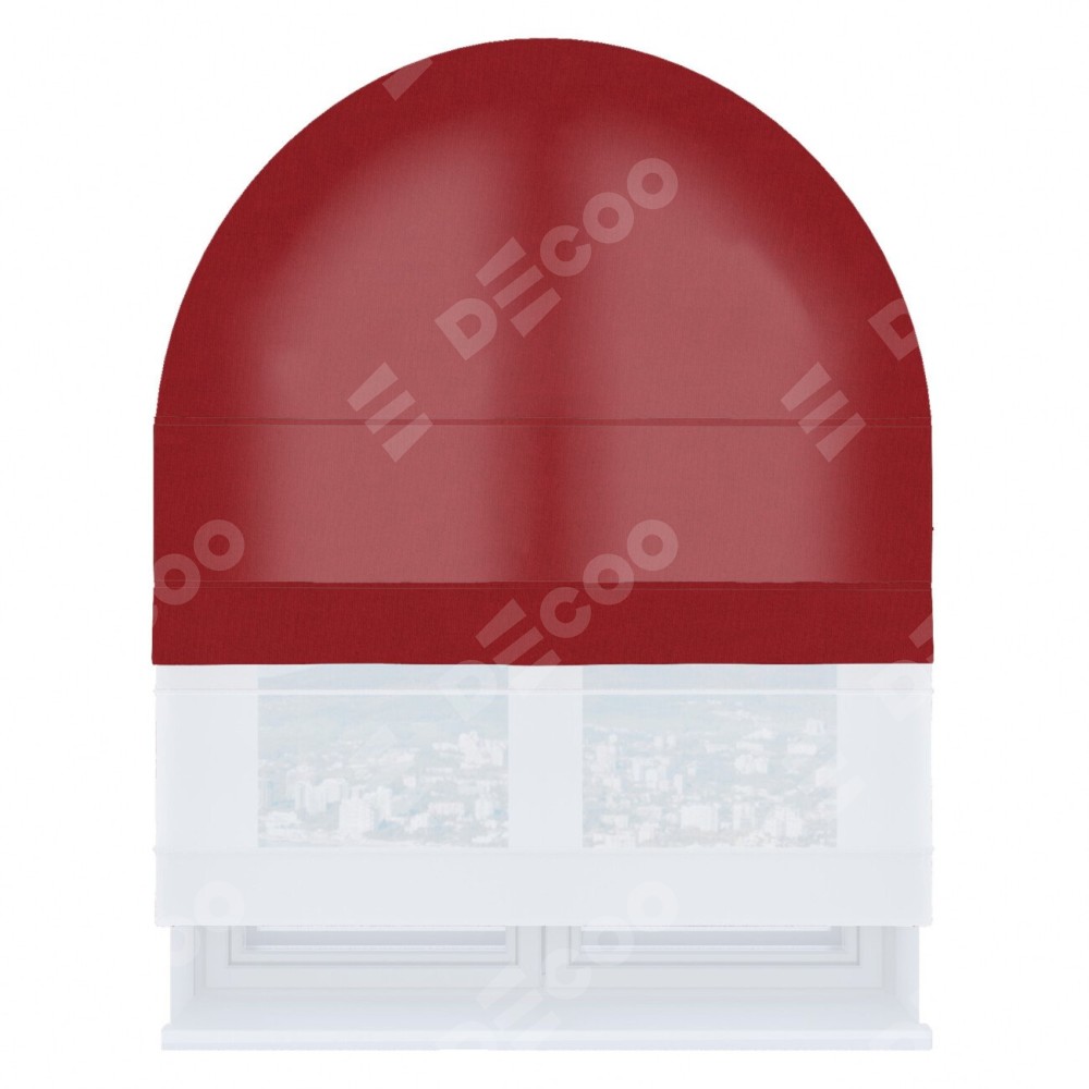 Римская штора день-ночь производителя «Cortin», используется для арочного проёма, пошита из двух полотен, с лицевой стороны канвас красный артикул v-113, вторая ткань тюль (по стандарту комплектуется тюль белого цвета артикул V-01). Штора шьётся по индивидуальным размерам, для данного типа римской шторы возможная ширина от 60 до 300 см. Удобное управление каждой шторой отдельно.