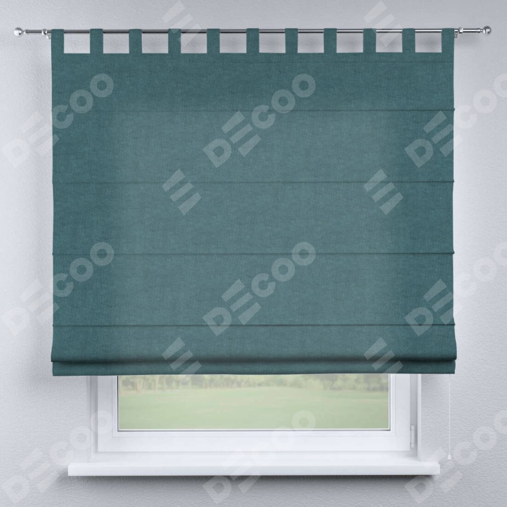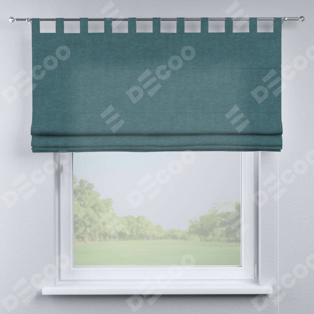 Римская штора производителя «Cortin», используется для проёма, пошита из ткани канвас ментоловый, артикул ткани v-114. Данная модель пошита на петлях, комплектуется на выбор круглым карнизом и подходит для монтажа на стену. Римская штора на петлях имеет простую систему регулировки высоты, отличительным преимуществом данной модели является простой способ монтажа. Достаточно повесить ее на трубу и штора готова!