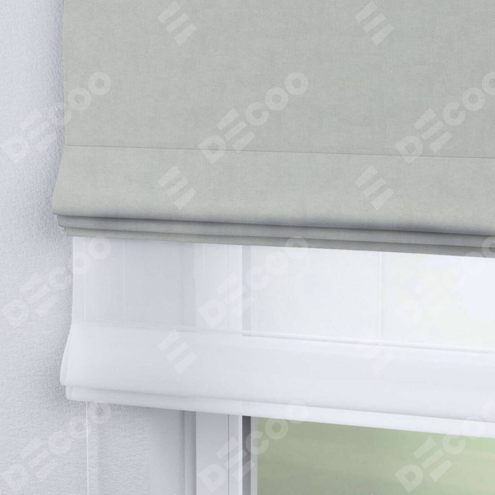 Римская штора день-ночь производителя «Cortin», используется для проёма, пошита из двух полотен, с лицевой стороны канвас светло-серый артикул v-371, вторая ткань тюль (по стандарту комплектуется тюль белого цвета артикул V-01). Имеет универсальный механизм и подходит для монтажа: на потолок, на стену и в нишу.