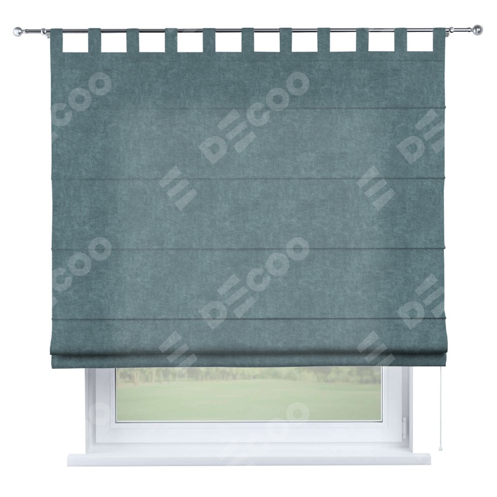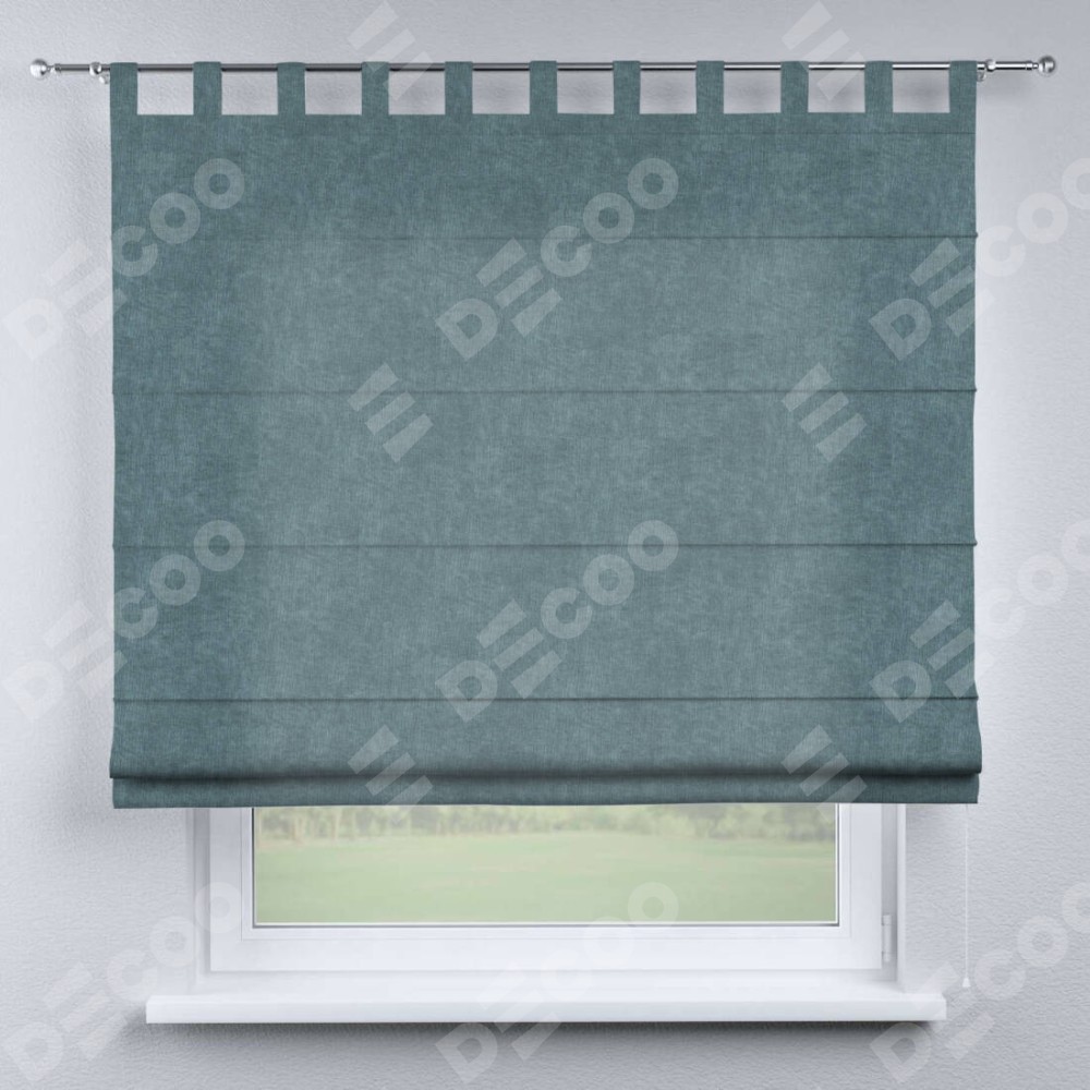 Римская штора производителя «Cortin», используется для проёма, пошита из ткани канвас серо-голубой, артикул ткани v-330. Данная модель пошита на петлях, комплектуется на выбор круглым карнизом и подходит для монтажа на стену. Римская штора на петлях имеет простую систему регулировки высоты, отличительным преимуществом данной модели является простой способ монтажа. Достаточно повесить ее на трубу и штора готова!