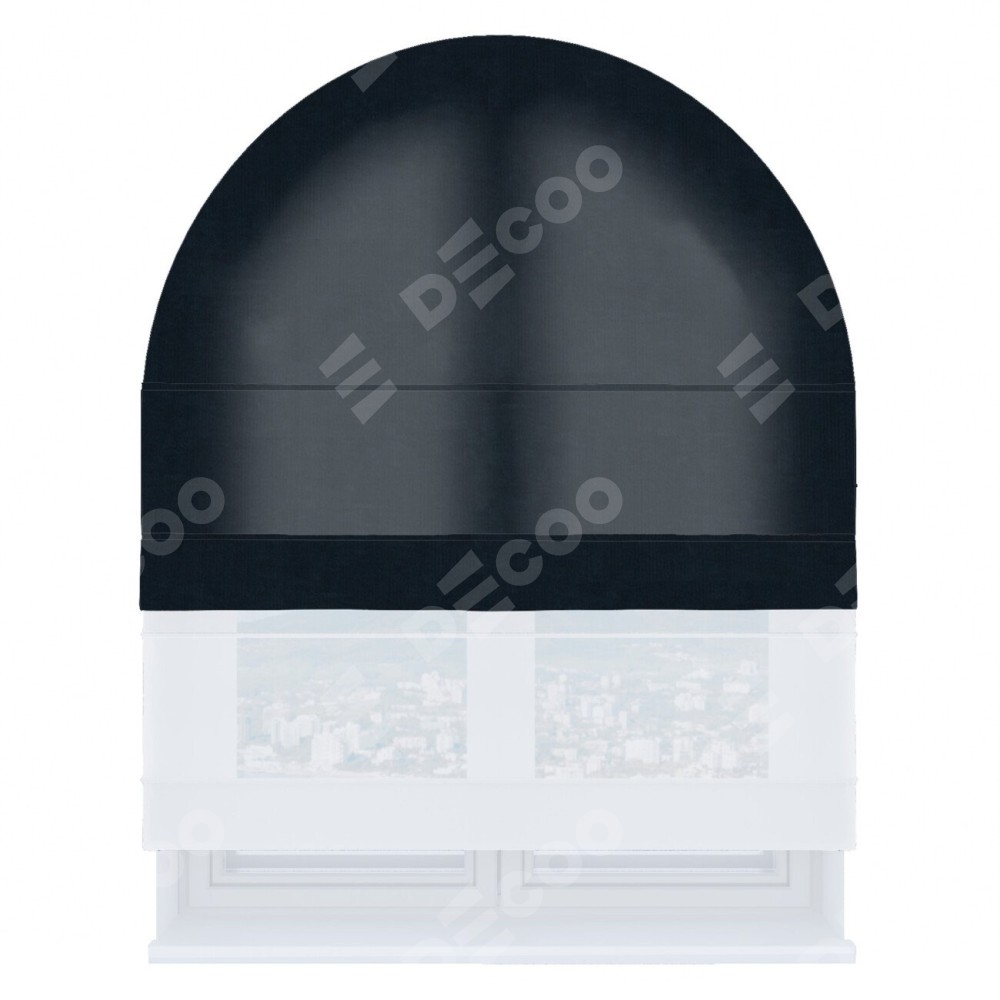 Римская штора день-ночь производителя «Cortin», используется для арочного проёма, пошита из двух полотен, с лицевой стороны канвас тёмно-синий артикул v-206, вторая ткань тюль (по стандарту комплектуется тюль белого цвета артикул V-01). Штора шьётся по индивидуальным размерам, для данного типа римской шторы возможная ширина от 60 до 300 см. Удобное управление каждой шторой отдельно.