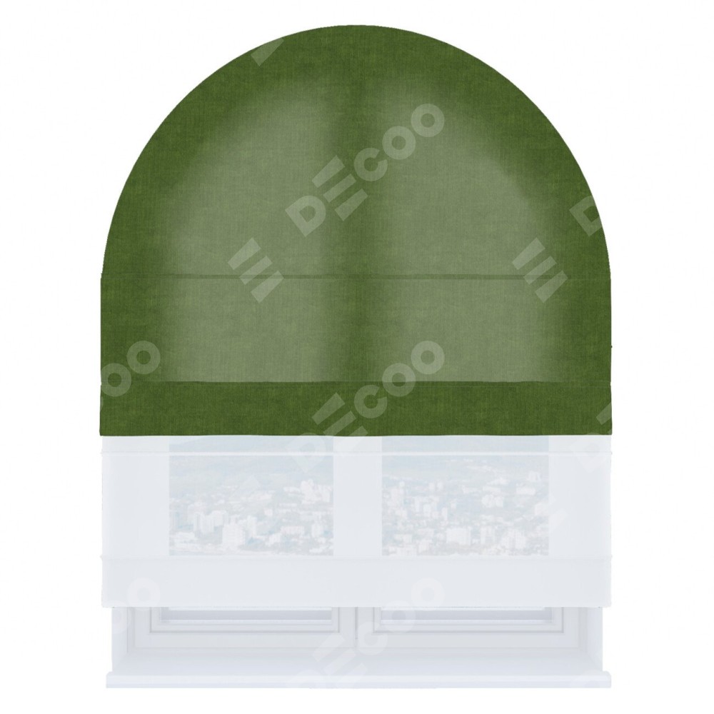 Римская штора день-ночь производителя «Cortin», используется для арочного проёма, пошита из двух полотен, с лицевой стороны канвас трава артикул v-473, вторая ткань тюль (по стандарту комплектуется тюль белого цвета артикул V-01). Штора шьётся по индивидуальным размерам, для данного типа римской шторы возможная ширина от 60 до 300 см. Удобное управление каждой шторой отдельно.