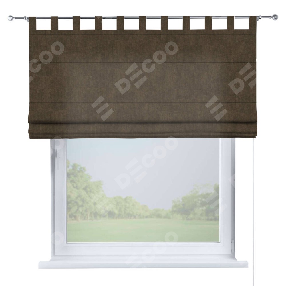 Римская штора производителя «Cortin», используется для проёма, пошита из ткани канвас шоколадный, артикул ткани v-193. Данная модель пошита на петлях, комплектуется на выбор круглым карнизом и подходит для монтажа на стену. Римская штора на петлях имеет простую систему регулировки высоты, отличительным преимуществом данной модели является простой способ монтажа. Достаточно повесить ее на трубу и штора готова!