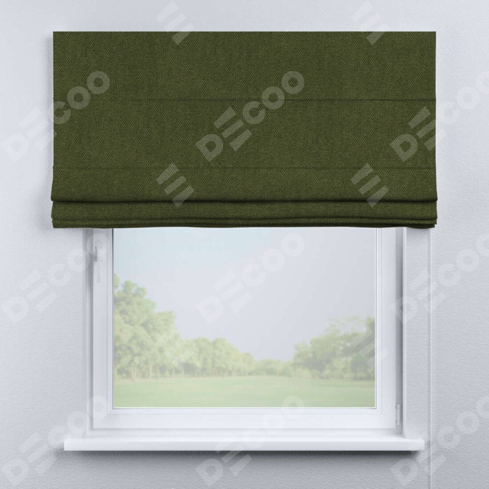 Римская штора производителя «Cortin», используется для проёма, пошита из ткани лён димаут салатовый, артикул ткани 91002. Имеет универсальный механизм и подходит для монтажа: на потолок, на стену и в нишу.