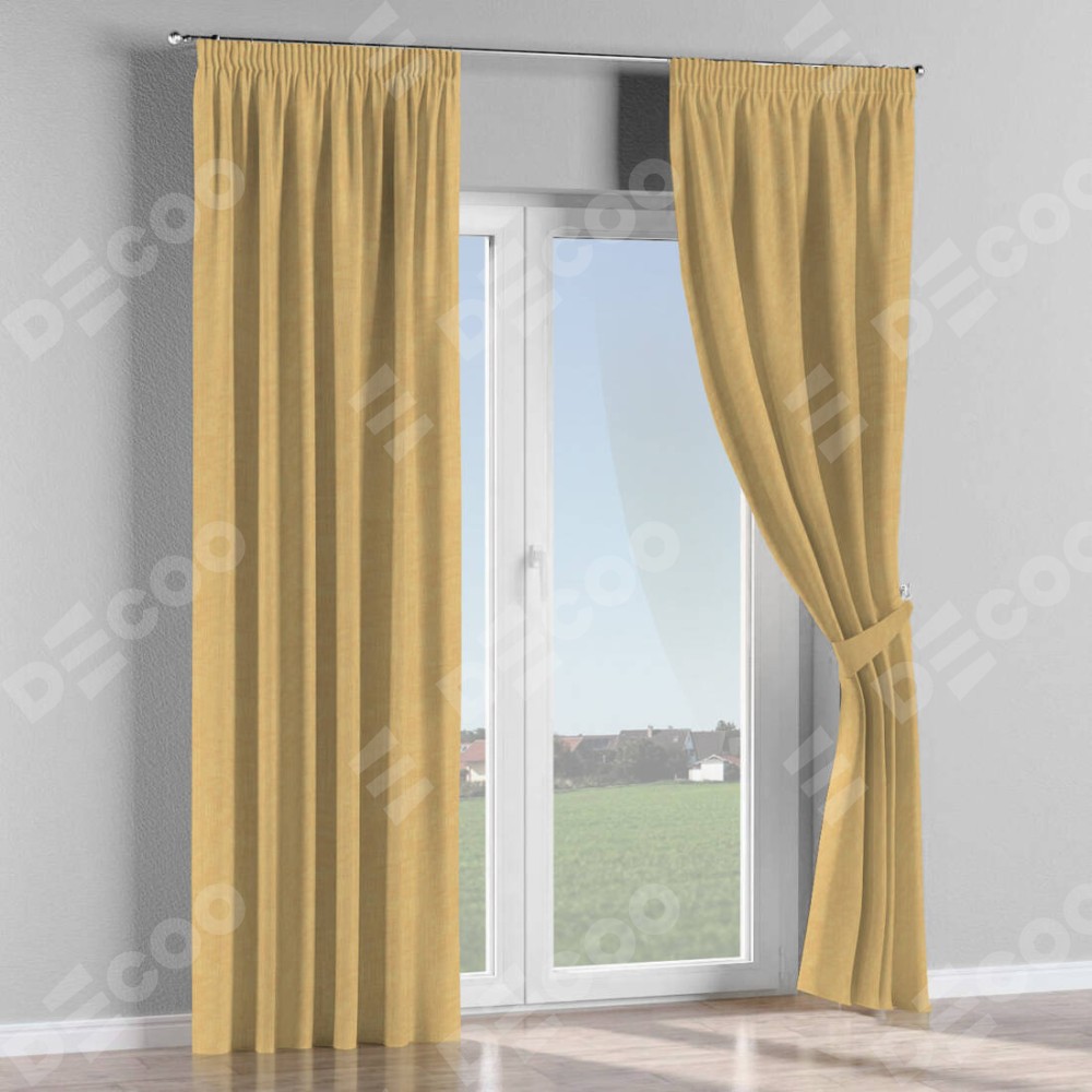 Комплект прямых штор, от производителя «Cortin», пошиты из ткани канвас абрикосовый, артикул ткани v-448. С изнаночной стороны в верхней части штор пристрачивается шторная лента с декоративными складками «Карандаш». Для создания элегантных складок прямые шторы шьются по стандарту с коэффициентом 1:2 (на 100 см. ширины проёма 200 см. ширины ткани).